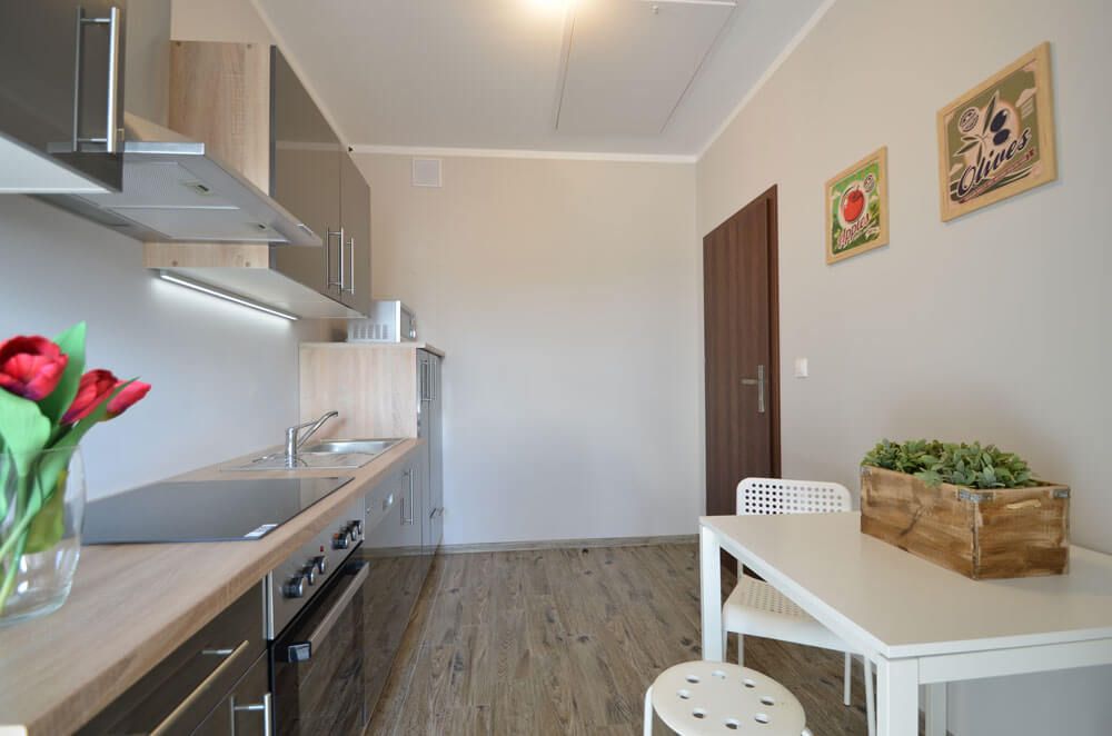 Do dyspozycji gości ogólnie dostępna jest kuchnia w pełnym wyposażeniu: kuchnia indukcyjna, pochłaniacz, zmywarka, lodówka, mikrofalówka, naczynia itp.